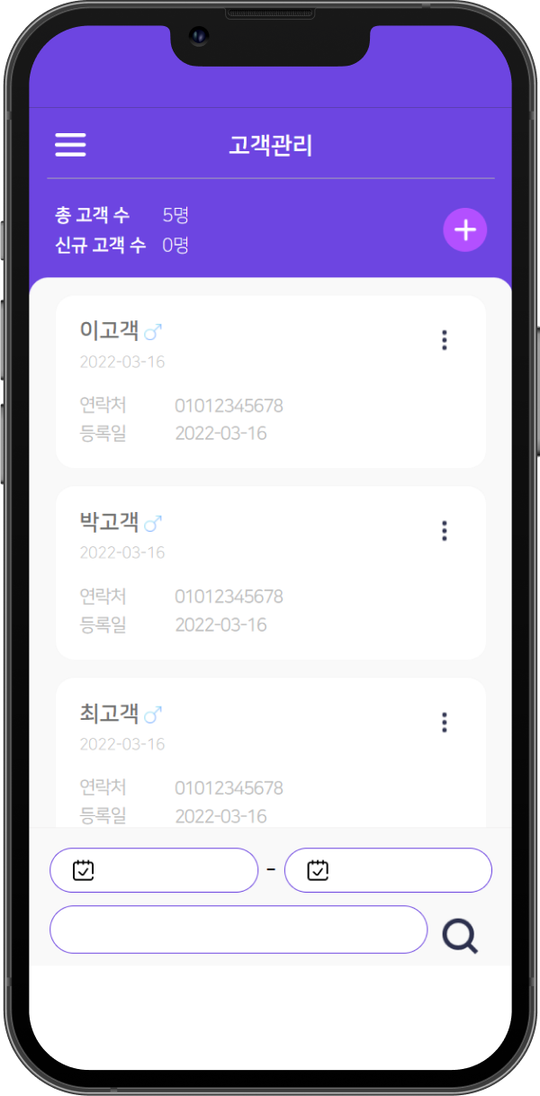 1. 회원을 대상으로 한 고객, 예약, 판매, 상담 등을 관리하는 서비스