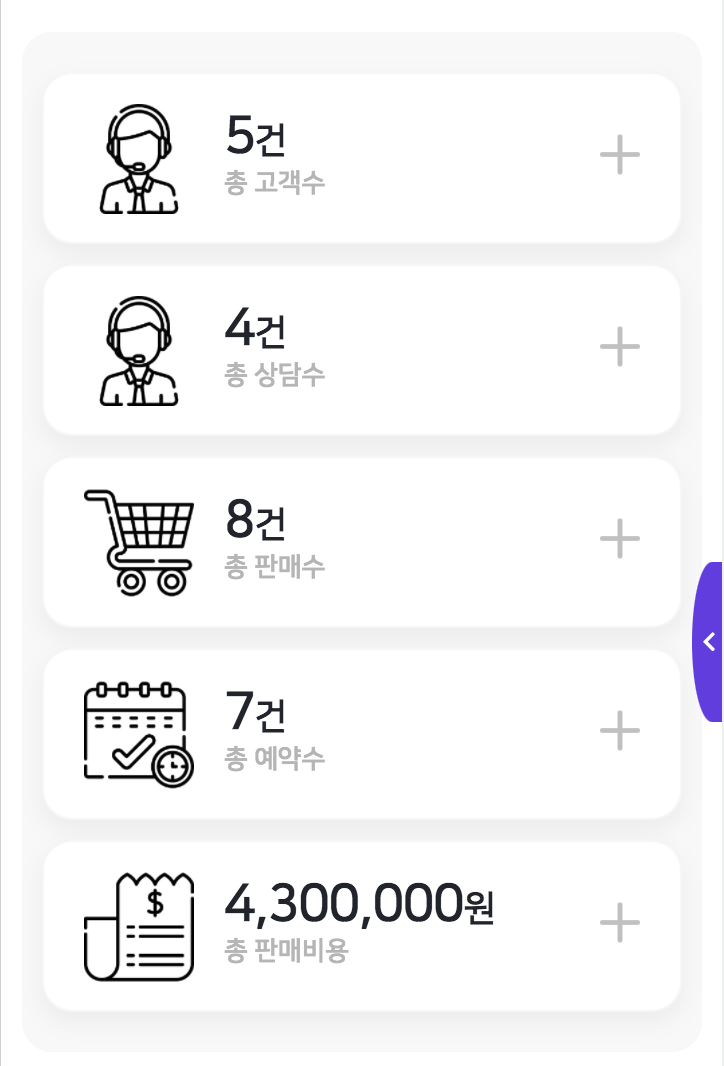- 오늘 등록하신 상담 건에 대한 수치를 확인할 수 있습니다.