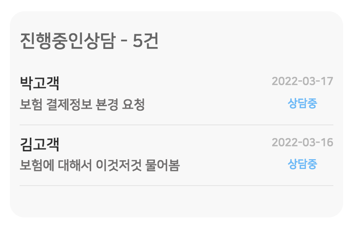 - 진행 중인 상담을 최대 5건으로 확인할 수 있습니다.