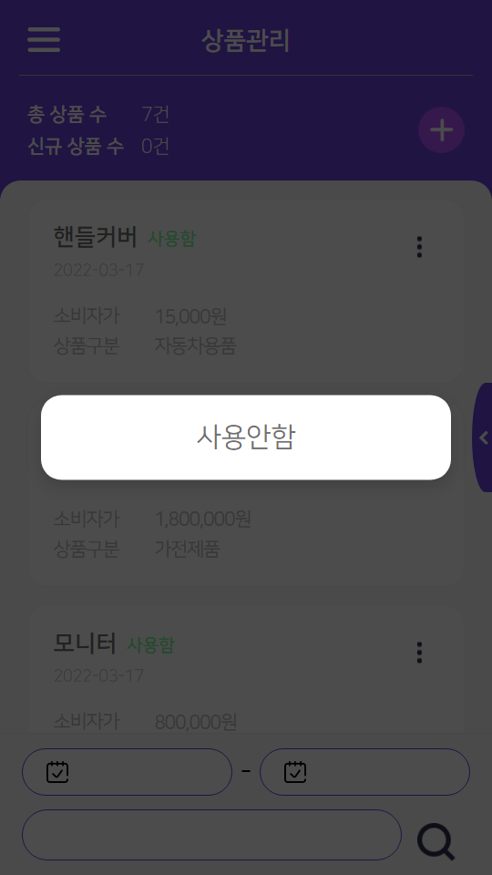을 터치하면 상품 등록 페이지로 이동합니다. -