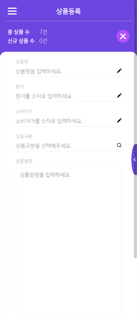 - 판매내용수정를 터치하면 상품내용 수정 페이지로 이동합니다.