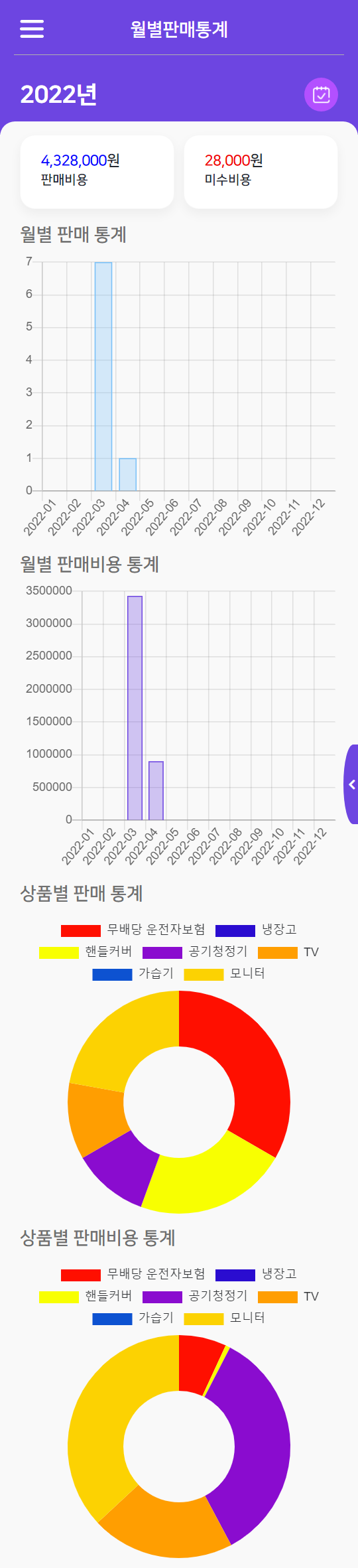 - 당해년도 매출 통계를 월별로 확인할 수 있습니다.